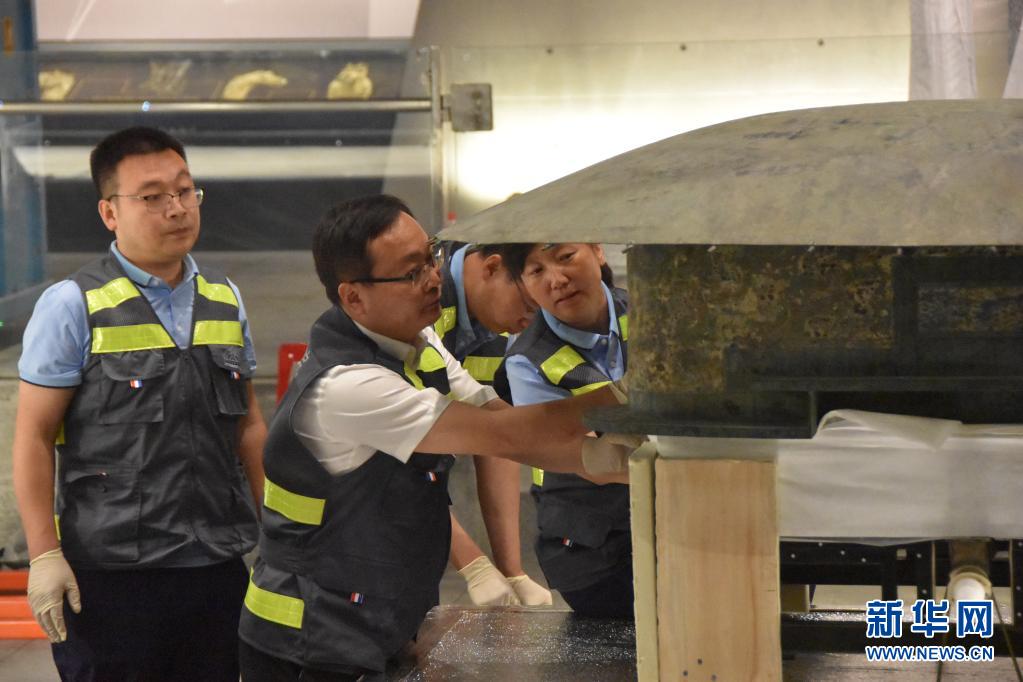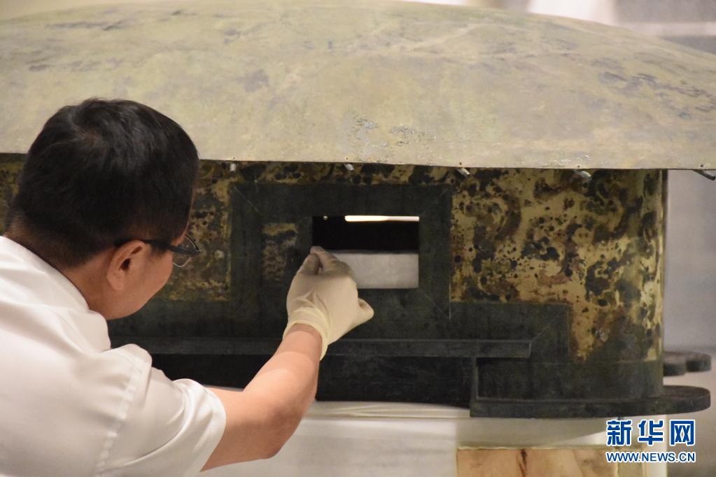 5月12日,文物保护工作者对已运入新展馆的铜车马进行组装检查。新华社记者 杨一苗 摄