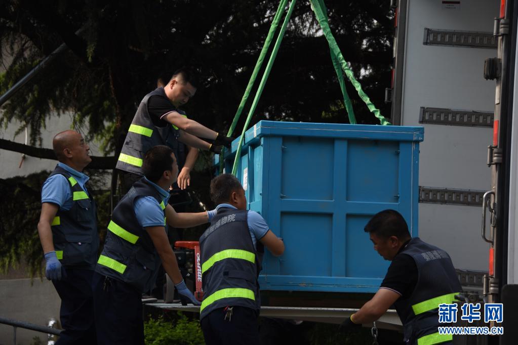 5月12日,文物保护工作者对铜车马进行装车运输。新华社记者 杨一苗 摄