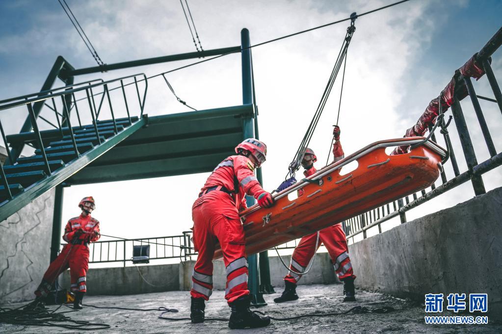 武警北京总队机动一支队官兵组织高空救援课目训练(2020年8月11日摄)。新华社发(申鸿浩 摄)