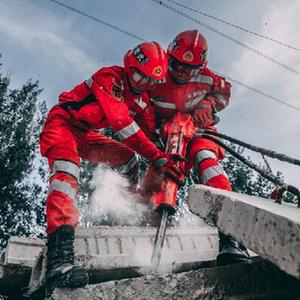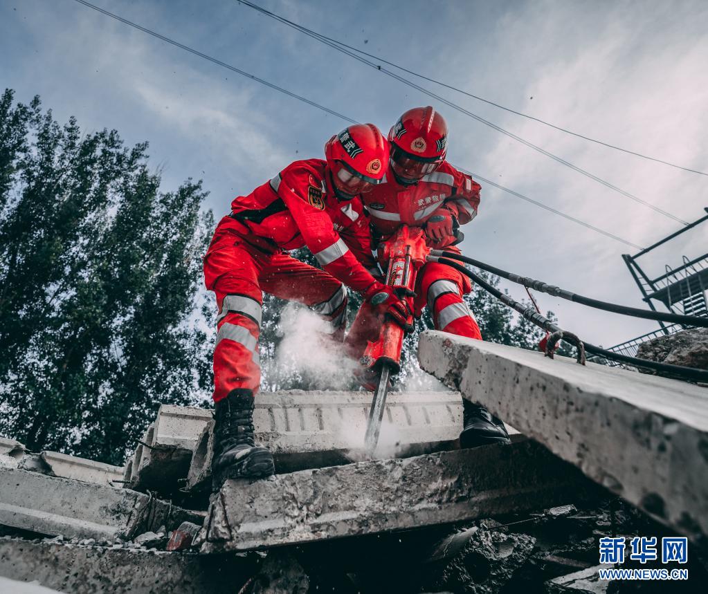武警北京总队机动一支队官兵组织液压破碎镐破拆水泥板训练(2020年8月11日摄)。新华社发(申鸿浩 摄)