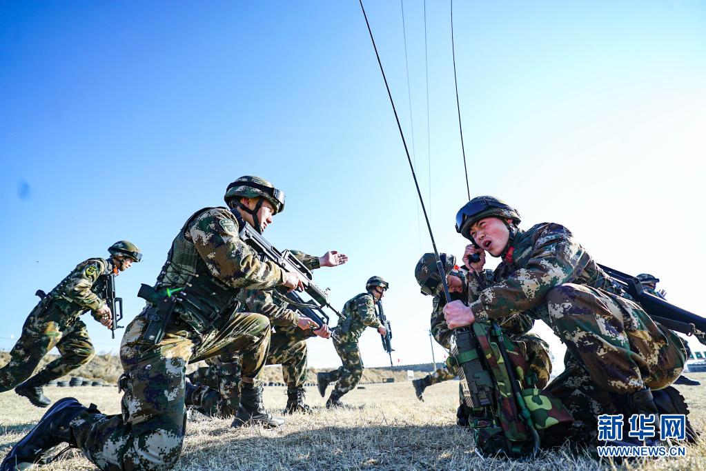 武警北京总队机动一支队特战小队进行战术演练(2020年3月4日摄)。新华社发(申鸿浩 摄)