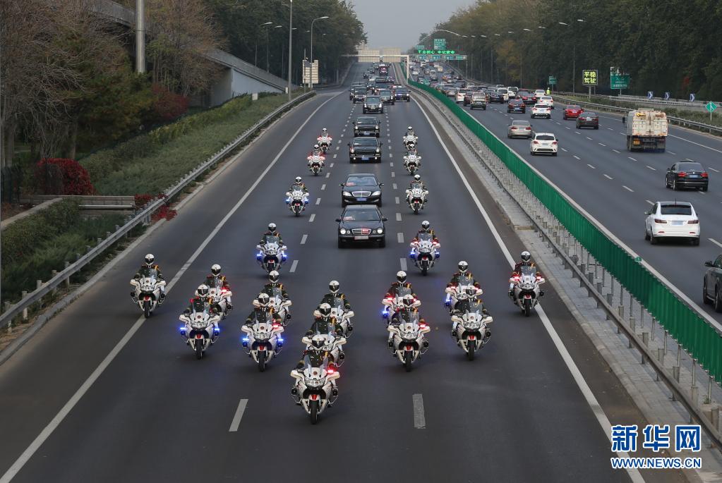 武警北京总队国宾护卫队迎接某国元首访华(2017年11月8日摄)。新华社发(武炎龙 摄)