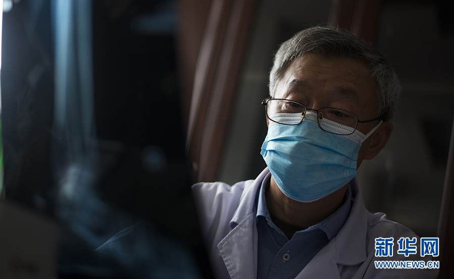 蔡圣朝结合患者的检查结果综合判断病情(5月7日摄)。