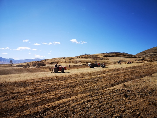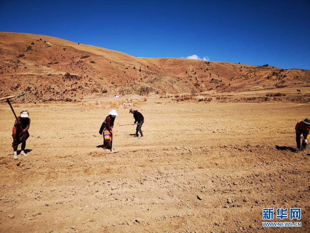 4月20日,四川省甘孜藏族自治州理塘县汉戈村村民在田里忙碌。新华社发(尹笑江 摄)