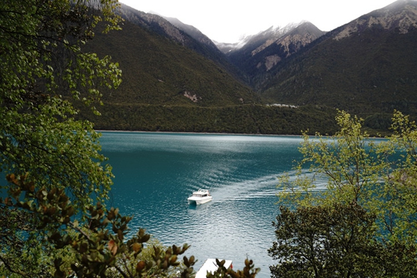交通的便利,大大促进西藏旅游业发展,图为游客在林芝巴松措景区观光。(新华社记者刘洪明摄)