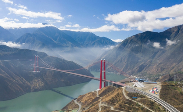 2018年底建成通车的雅康高速泸定大渡河大桥。(新华社记者江宏景摄)