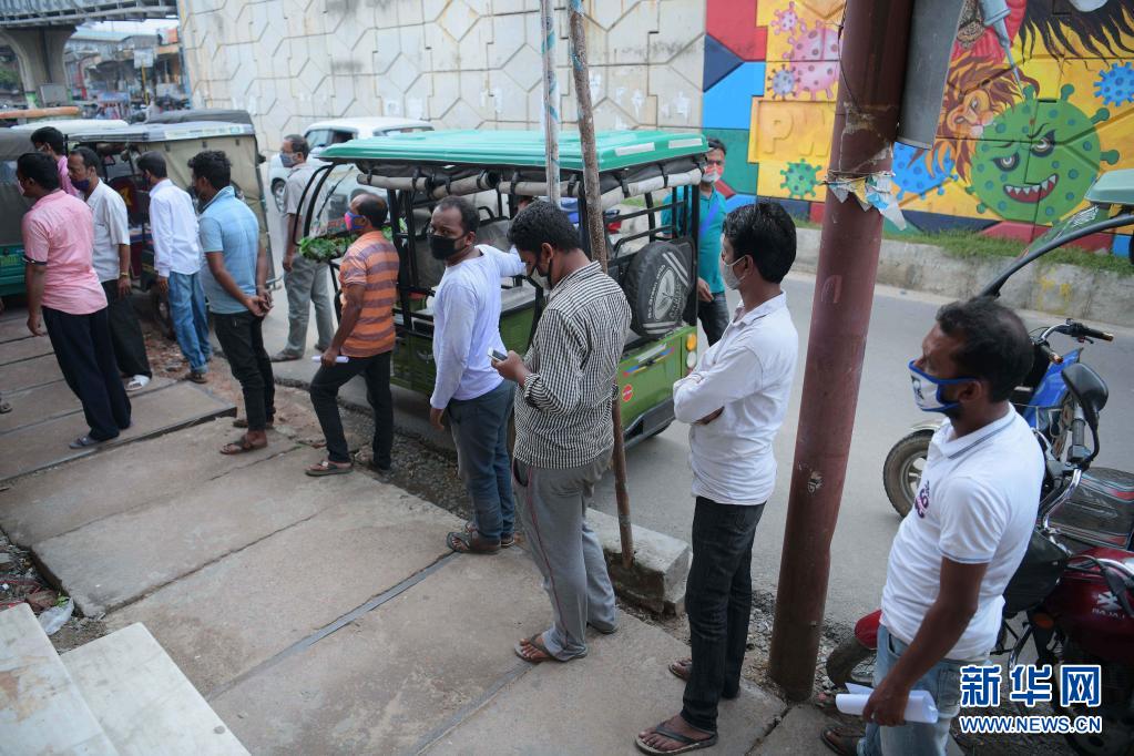 5月13日,人们在印度阿加尔塔拉等待接种新冠疫苗。