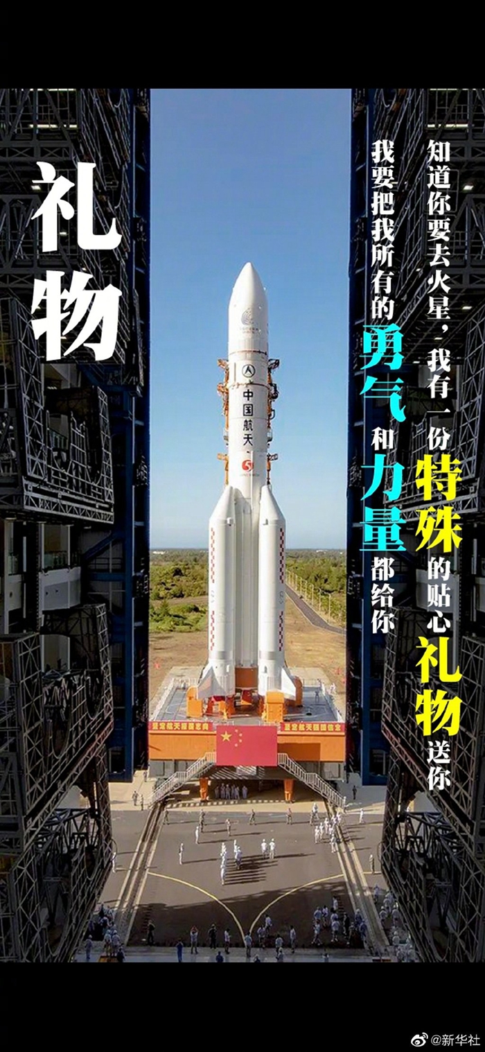 由长征五号火箭发射的天问一号探测器,穿越漫漫星河成功降落火星,在这美好的时刻,长征五号为天问一号深情写下九封情书。(来源:航天科技集团一院 )