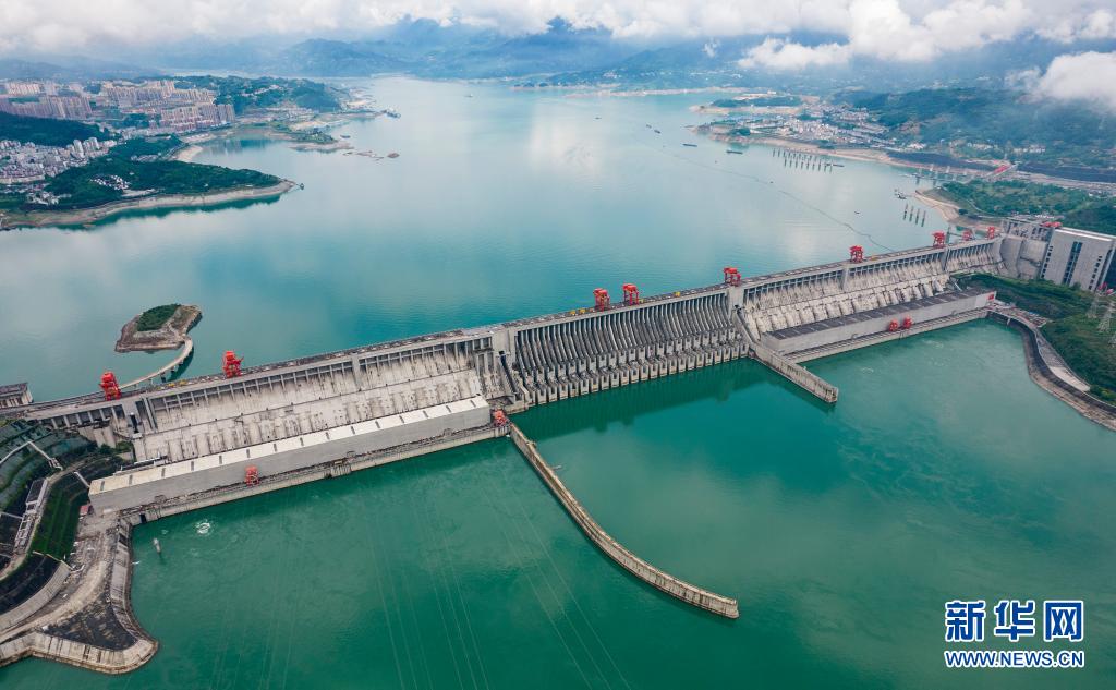 5月15日拍摄的水位下降后的三峡大坝(无人机照片)。
