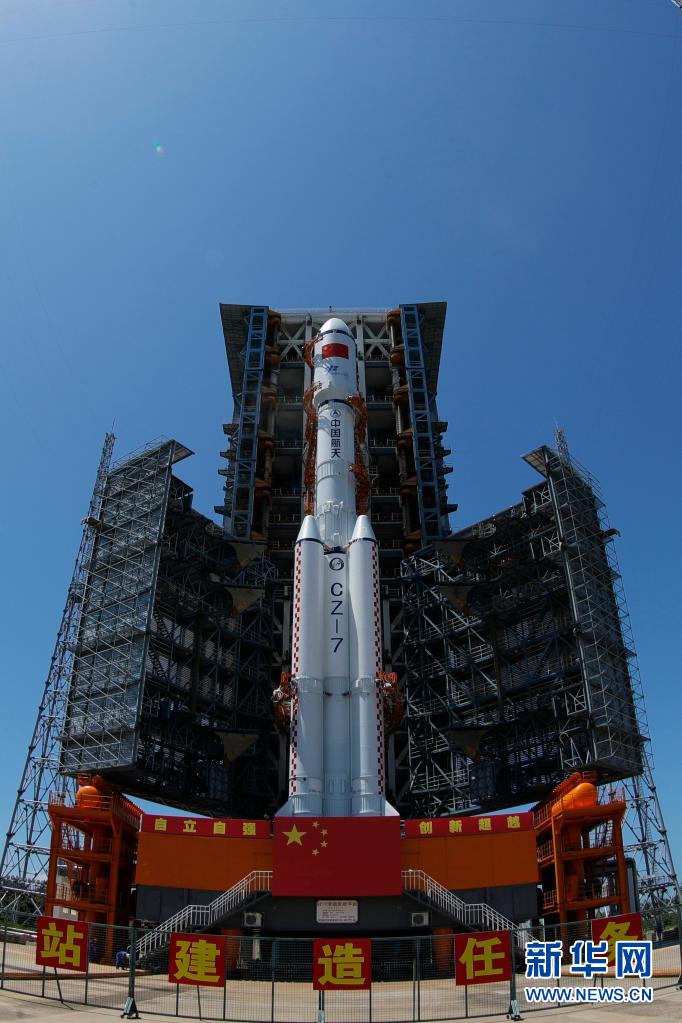 新华社海南文昌5月16日电(李国利、邓孟)中国载人航天工程办公室透露,5月16日,天舟二号货运飞船与长征七号遥三运载火箭组合体已转运至发射区。