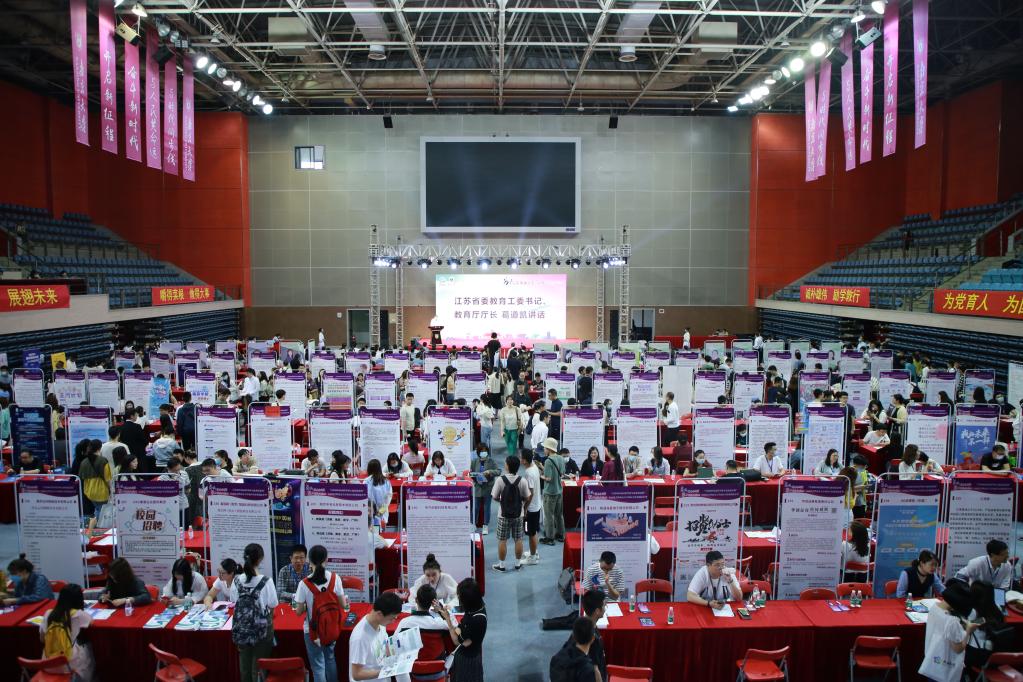 5月9日,江苏2021届高校毕业生就业促进周启动仪式在南京大学仙林校区方肇周体育馆举行。(江苏省教育厅 供图)