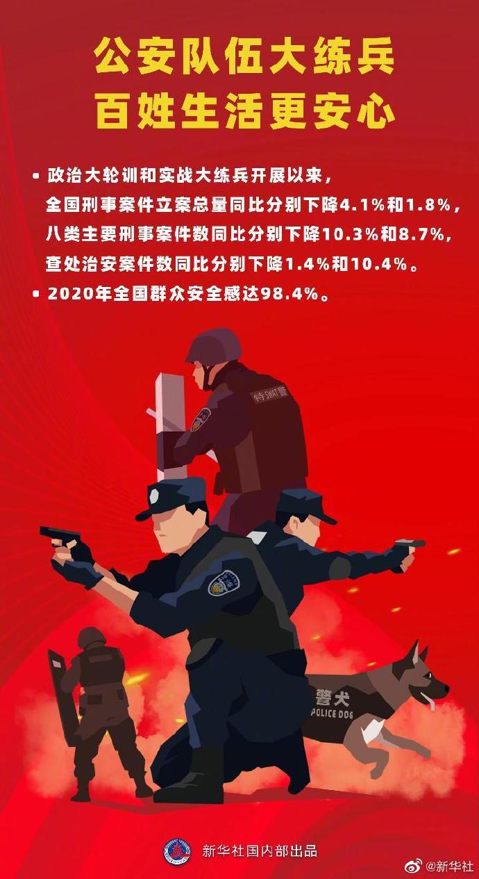 记者19日从公安部举行的新闻发布会获悉, 自2019年公安部党委部署开展为期三年的政治大轮训和实战大练兵以来,全国群众安全感逐年上升,2020年达到98.4%。(记者白阳、熊丰,制图薛朋舟)