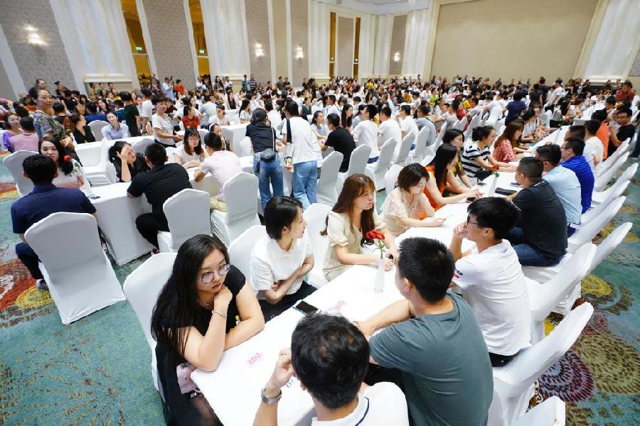 (2018年8月12日,河北省唐山市举办第二届京津冀单身青年相亲大会,来自京津冀三地近千名单身青年男女参加。 董钧 摄)