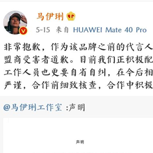——代言时冲在前头,出事后躲在最后。有网友调侃说,明星代言翻车后,“道歉、解约、下次注意”成为应对的标准流程。“最近,一些朋友在使用‘爱钱进’产品时遇到问题,我对此感到十分痛心!”2020年7月,知名主持人汪涵代言的“爱钱进”平台出现兑付困难,事发后,汪涵选择道歉,并表示“跟进此事”“为妥善解决此事尽自己的力量”。在“茶芝兰事件”中,马伊琍工作室发布的致歉声明也表示,“茶芝兰品牌目前正在接受进一步调查,马伊琍女士已与该品牌解约。”有网友质问:“品牌好时,代言人和企业赚得盆满钵满;品牌出了问题,代言人又想独善其身?”