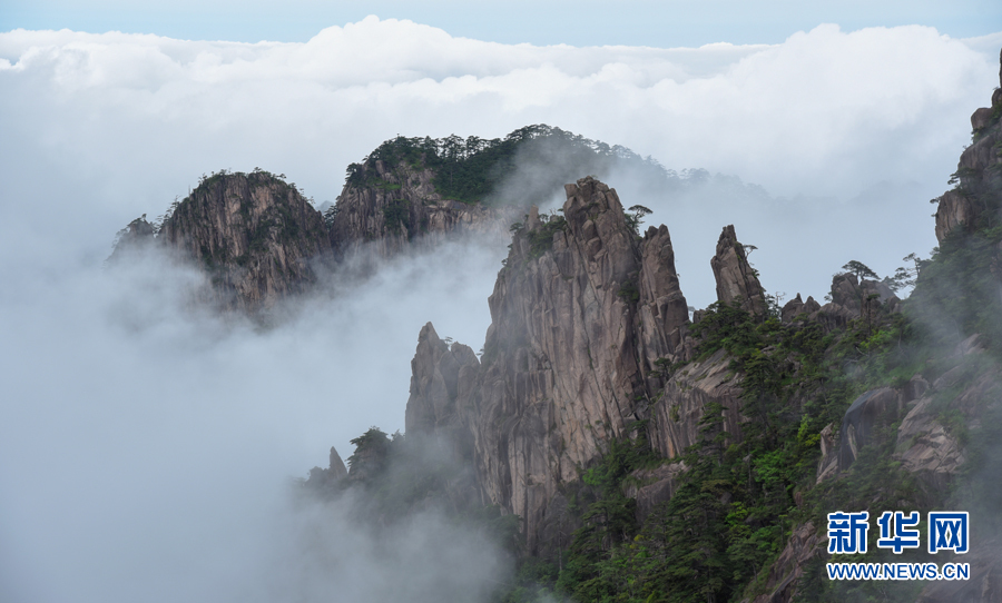 5月18日,黄山风景区雨后放晴,出现大面积云海景观。