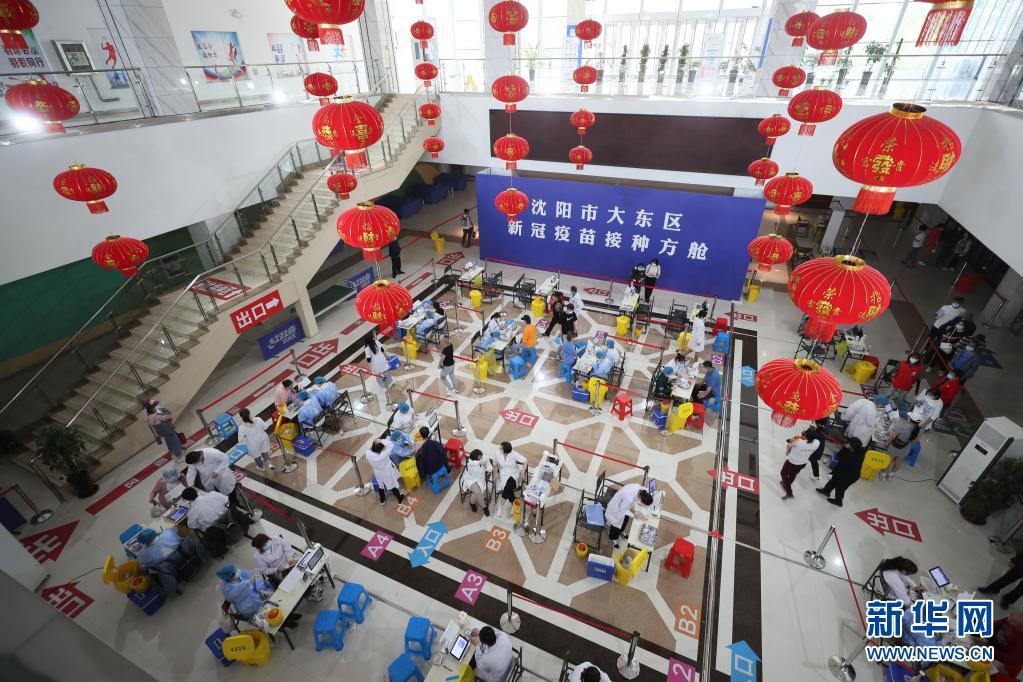 5月18日,市民在辽宁省沈阳市大东区新冠疫苗接种方舱内接种新冠疫苗。新华社记者 杨青 摄