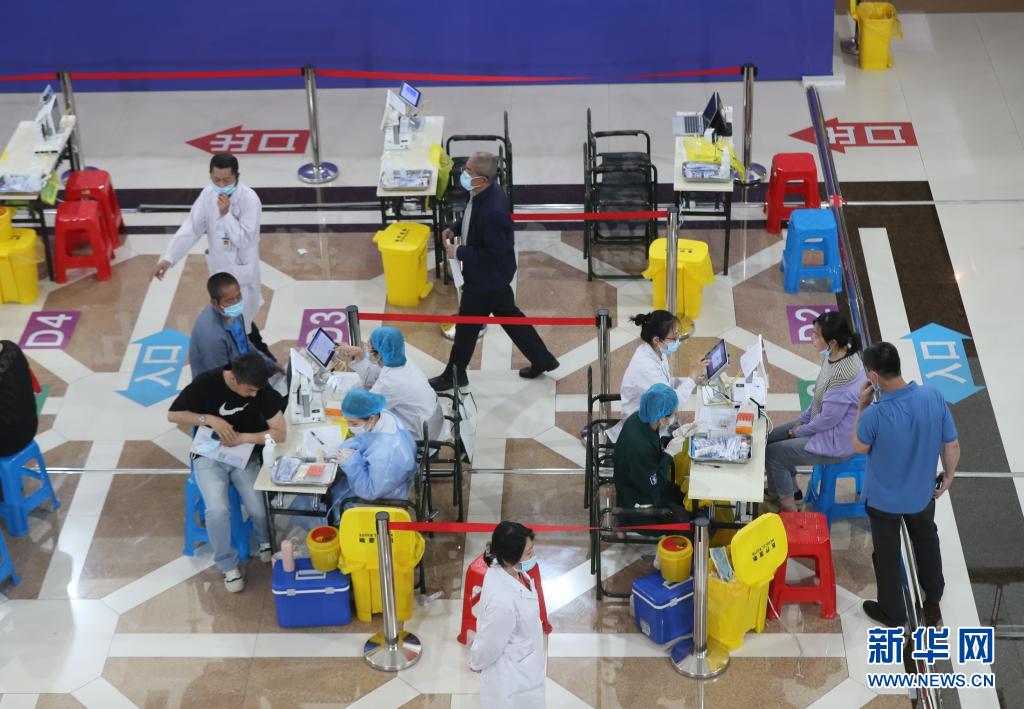 5月7日,医护人员在辽宁省沈阳市大东区新冠疫苗接种方舱为市民接种疫苗。新华社记者 潘昱龙 摄