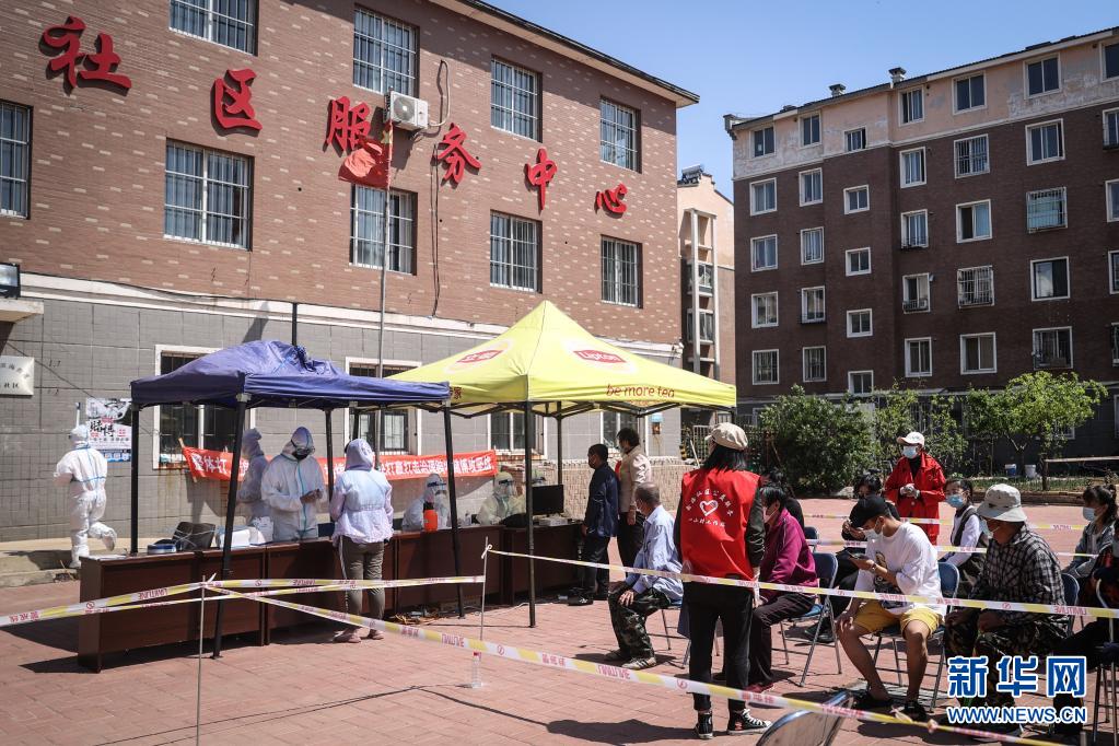 5月18日,市民在辽宁省营口市西市区滨海街道智胜社区服务中心核酸检测点进行核酸检测。新华社记者 潘昱龙 摄