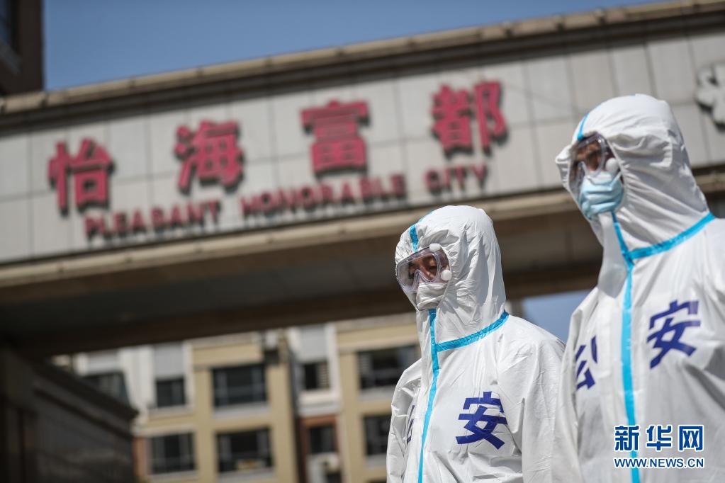 5月19日,民警在辽宁省营口市鲅鱼圈区红海社区怡海富都小区入口值守。新华社记者 潘昱龙 摄