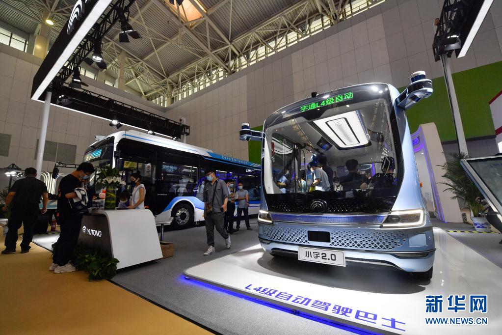 5月20日在天津梅江会展中心拍摄的L4级自动驾驶巴士。新华社发(孙凡越 摄)