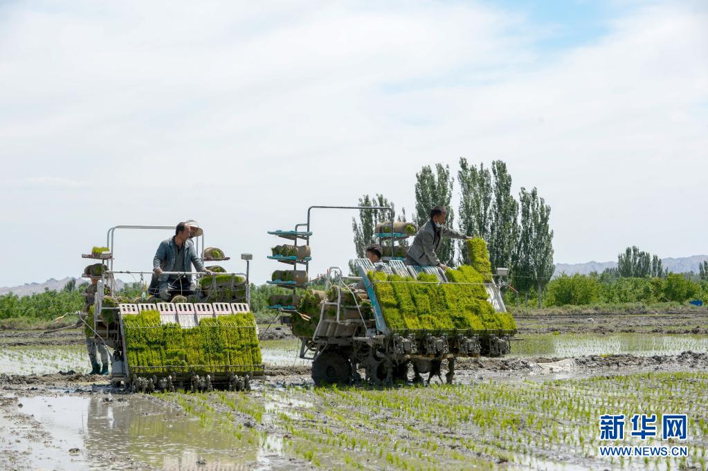 进入5月,新疆温宿县的11万余亩水稻进入插秧期。稻田间,插秧机往来穿梭,一片繁忙景象。