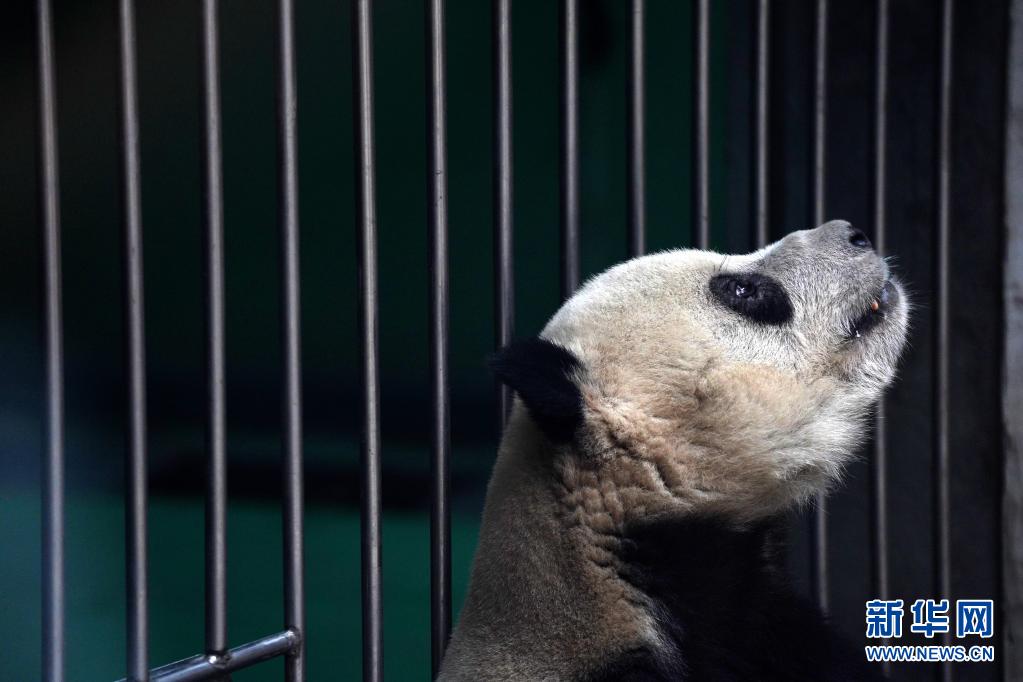 在北京动物园大熊猫馆拍摄的大熊猫“萌二”(4月21日摄)。新华社记者 鞠焕宗 摄