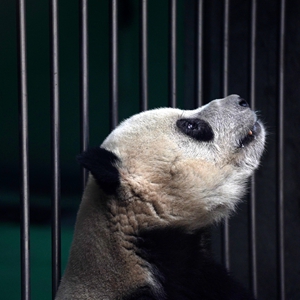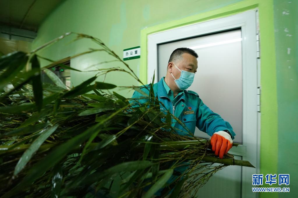在北京动物园大熊猫馆,马涛准备将大熊猫“萌萌”食用的竹子放到户外运动场(4月21日摄)。新华社记者 鞠焕宗 摄