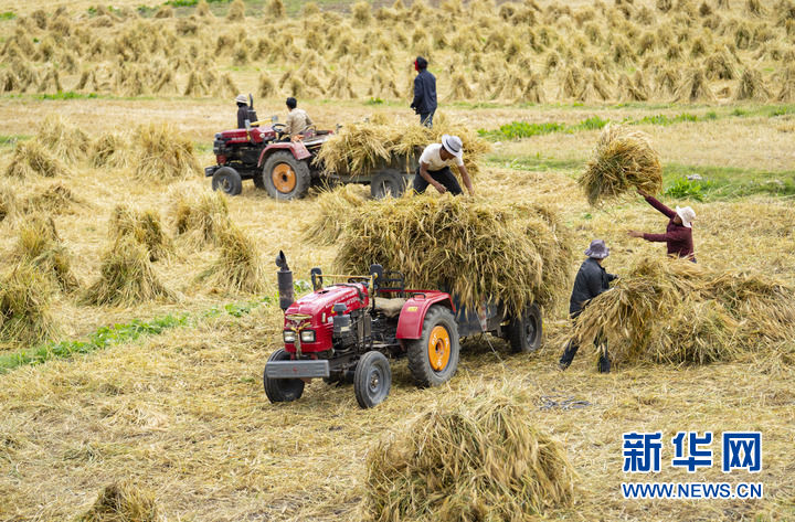 西藏昌都市八宿县然乌镇康沙村的村民在收青稞(2020年9月10日摄)。 新华社记者 普布扎西 摄