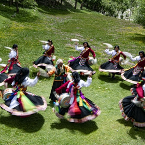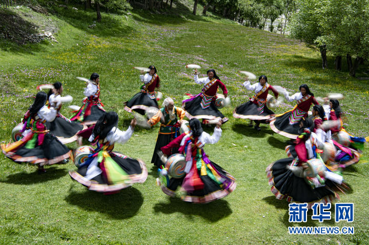 在山南市琼结县,久河村卓舞队的队员在表演国家级非物质文化遗产项目——“久河卓舞”(2020年7月1日摄)。 新华社记者 普布扎西 摄