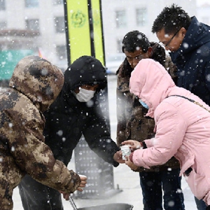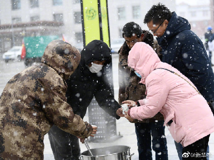目前玛多县城温度为2℃,海拔4350米,普降中雪。(记者李宁、央秀达珍、张子琪、张龙)