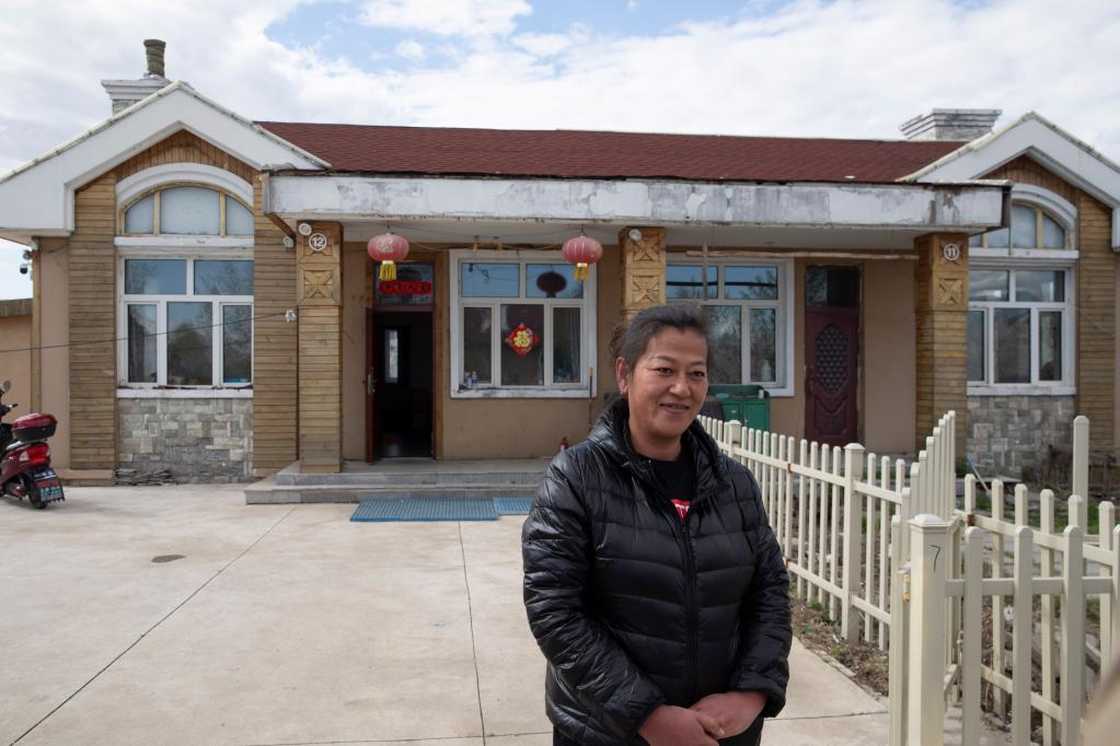 曹丽伟站在自家的新房前。新华社记者张涛 摄