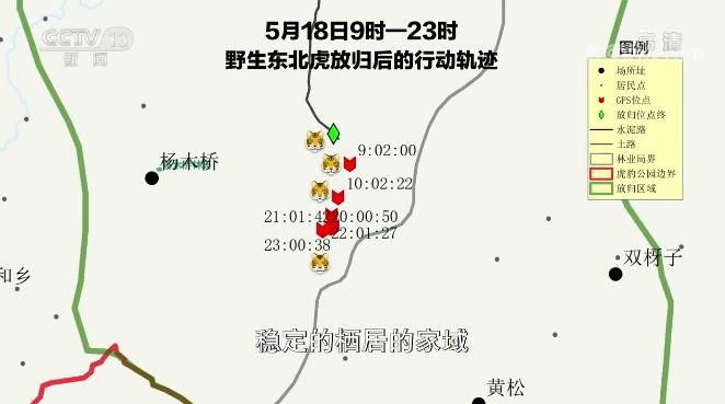 国家林草局猫科动物研究中心常务副主任 姜广顺:通过卫星跟踪项圈我们可以来判定这个老虎在野外是不是成功捕食,如果成功捕食说明它已经能够很好的来进行独立的生存。而且我们还可以判断它是不是从分布区来说,是不是找到了一个稳定的栖居的家域,还有就是说我们通过跟踪项圈还可以判定它离一些居民点的远近,给我们一些管理部门提供预警的数据参考。我觉得对于这只虎一个放归来说,这只是一个开始。