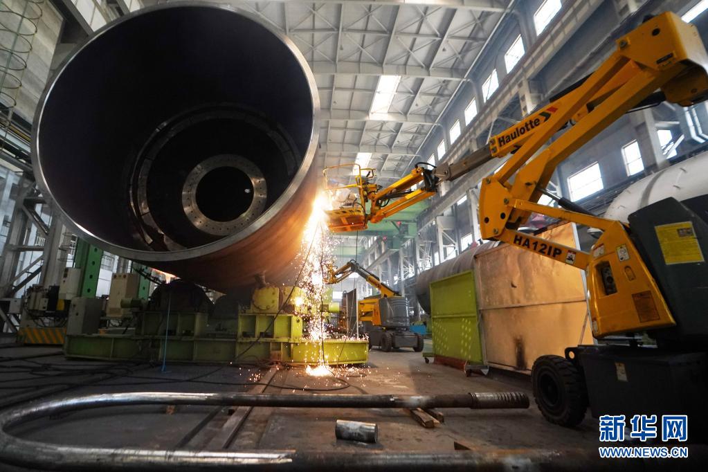 工人在哈电集团哈尔滨锅炉厂有限责任公司生产车间作业(2月23日摄)。新华社记者 王建威 摄