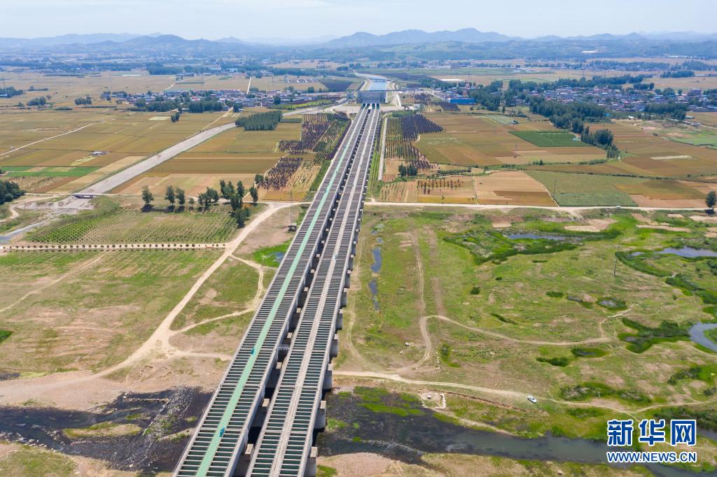 这是5月22日拍摄的河南省平顶山市鲁山县的南水北调中线关键性工程——沙河渡槽(无人机照片)。