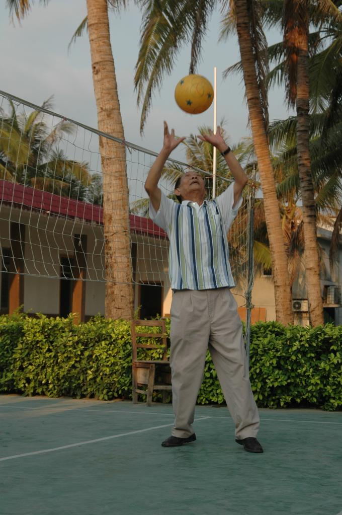 2006年,袁隆平在三亚南繁基地利用科研业余时间打气排球