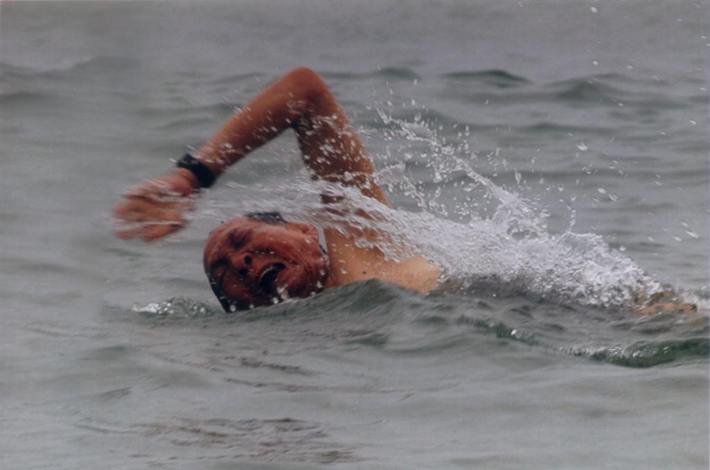 2004年,袁隆平在三亚游泳