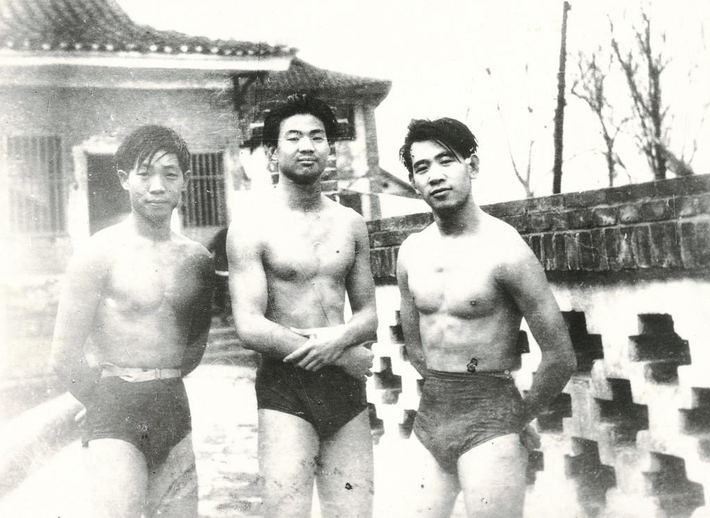 学生时代的袁隆平(左一)酷爱游泳