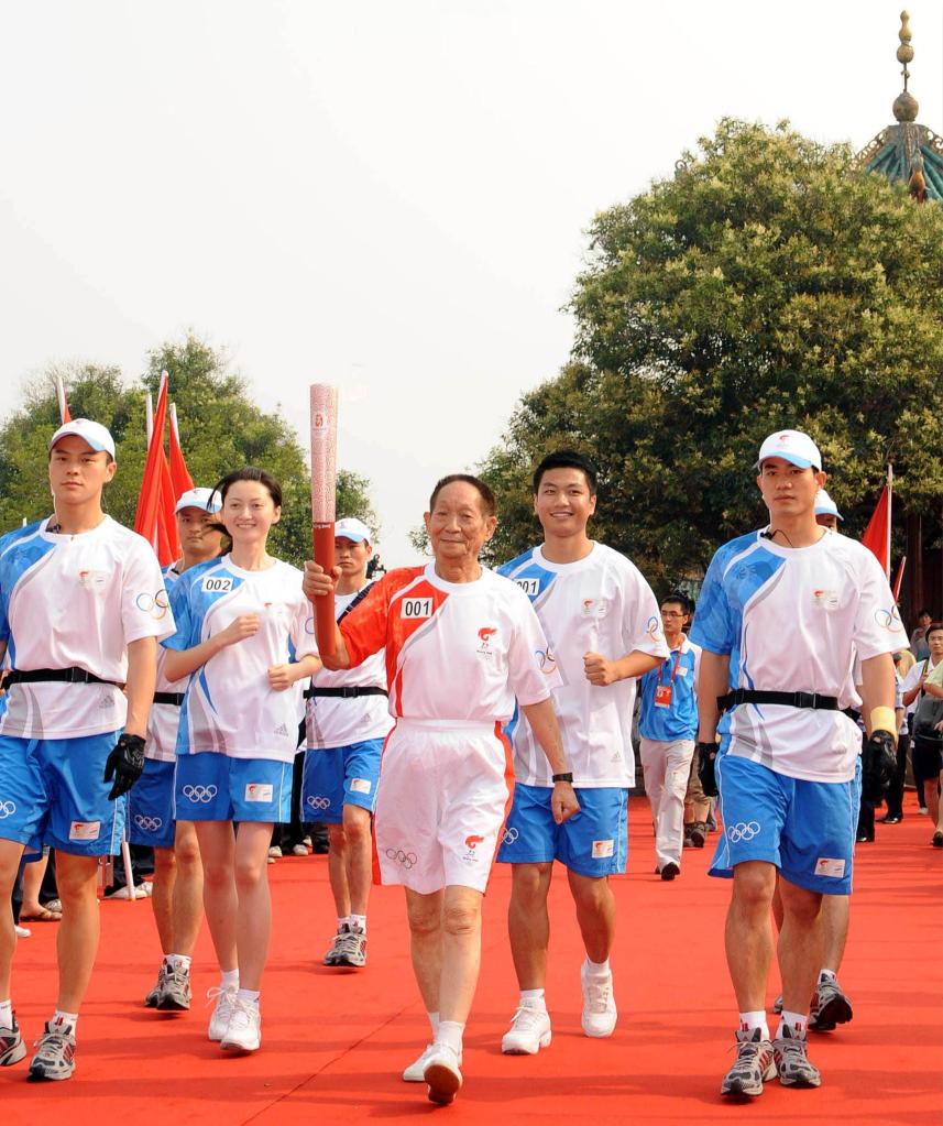 袁隆平在传递北京奥运会圣火