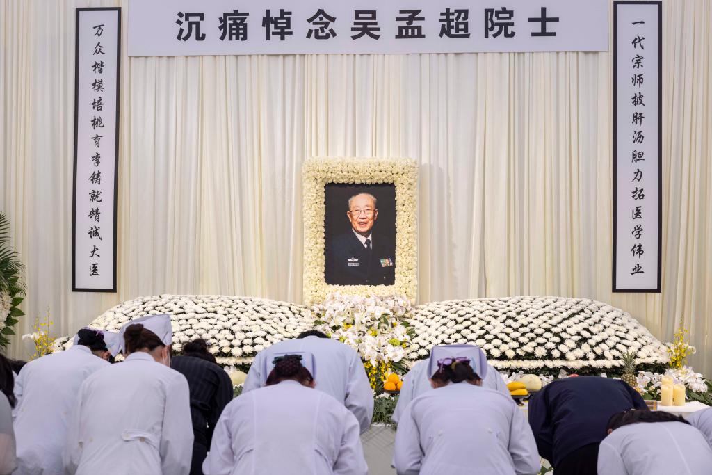 新华社上海5月23日电(记者袁全、龚雯)细雨沥沥。23日,吴孟超院士的追思活动在其生前工作的海军军医大学第三附属医院(上海东方肝胆外科医院)举行,前来吊唁者络绎不绝。他们眼泛泪光、脚步缓慢,用一束束鲜花和一次次鞠躬,表达着对吴院士的深深爱戴和依依不舍。