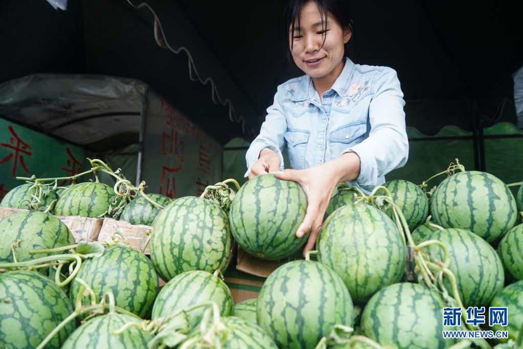 5月23日,在南京市江宁区横溪街道,瓜农在售卖西瓜。