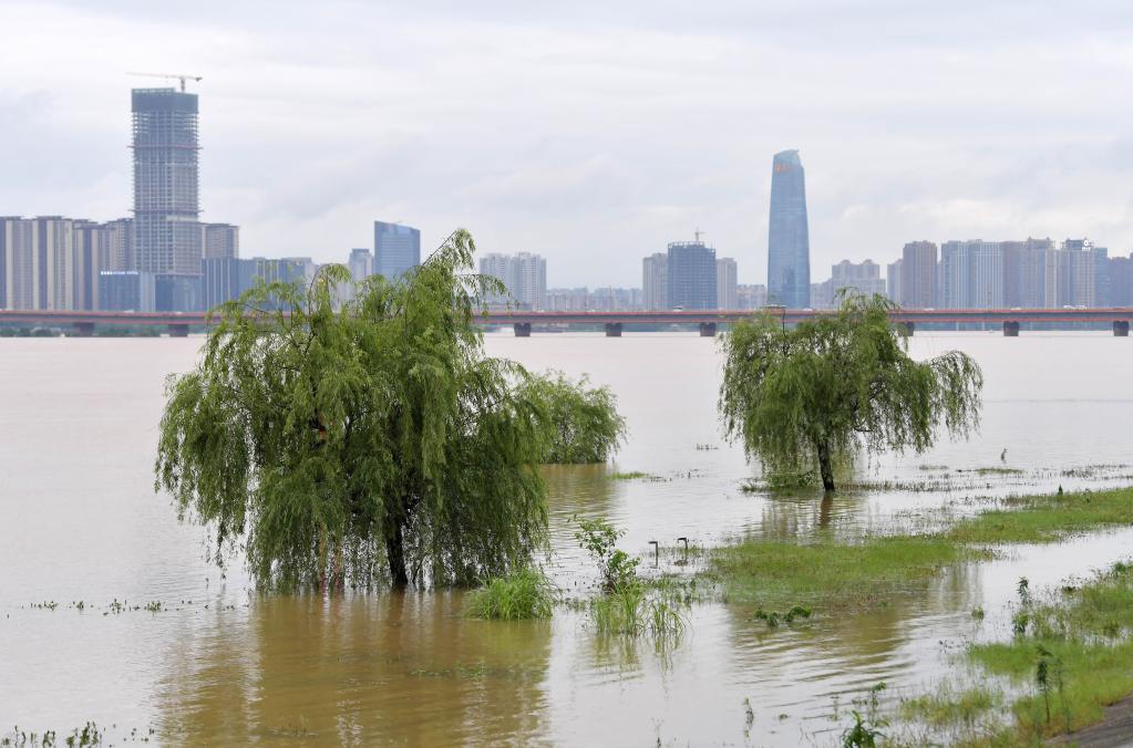 在赣江南昌段,由于水位上涨,一些树木泡在水里。 新华社记者彭昭之 摄