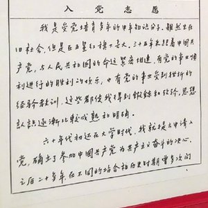 行至展区尽头,只见一面红墙上悬挂着100位科学家的入党申请书,纸张深浅不一,新旧不同;细细看来,每一篇笔迹都工整优美、话语质朴真切——