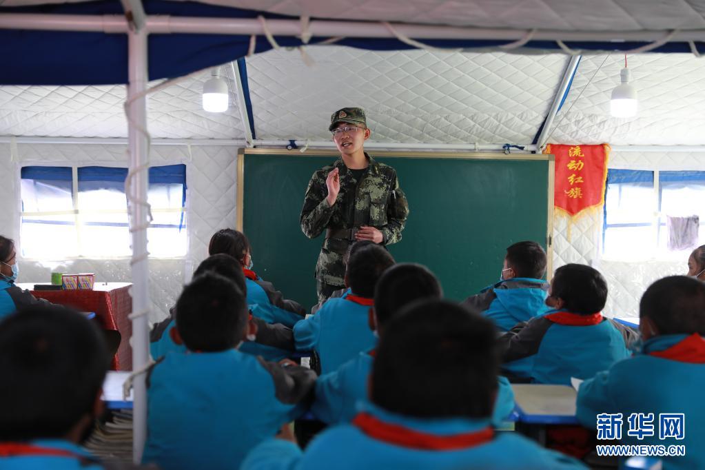李春告诉记者,学校现有380名寄宿学生,震后没有上课场所。复课时间越来越近,武警官兵争分夺秒,很快为他们搭建了10顶帐篷教室。