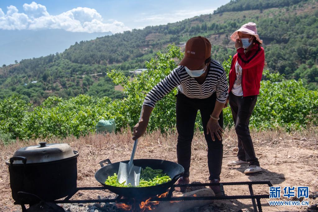 当当当……临近中午,均匀的切菜声在小山坡上响起。十多名妇女在临时搭建的简易厨房忙碌着,有的洗菜,有的切菜,有的炒菜,有的添加柴火。大家协调有序,配合默契,一会儿工夫就做好了饭菜。