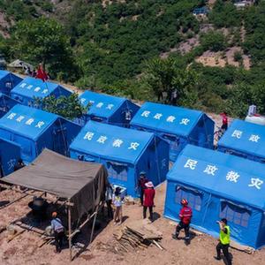 漾濞县苍山西镇秀岭村大地埂组陈家村临时安置点位于一处缓坡上,15顶蓝色的帐篷有序排列。5月21日云南漾濞6.4级地震发生后,这里成了陈家村15户67位村民临时的“家”。地震中,处于震中的陈家村村民房屋受损较为严重,大部分房屋拉裂损坏,部分房屋整体倒塌损毁,地面开了许多裂缝。