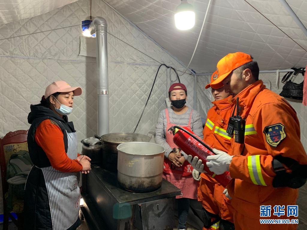 25日,青海玛多“5·22”7.4级地震灾后第四天,玛多县城飘起小雪。青海省玉树藏族自治州消防救援支队消防员群英尕丁,又来到玛多县民族寄宿制中学的安置区日常巡查。