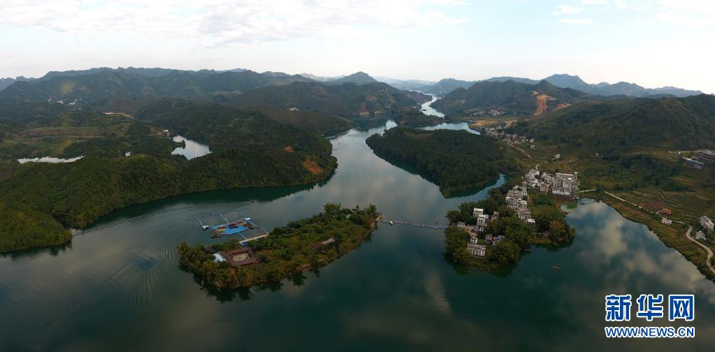 这是广西巴马瑶族自治县赐福湖和长寿岛景观(2018年11月8日摄,无人机照片)。新华社记者 陆波岸 摄