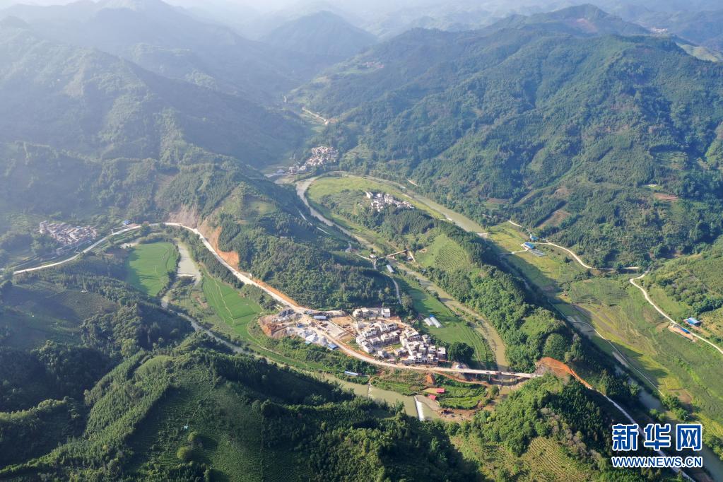 这是广西资源县“资水丹霞”田园综合体内的田园景观(4月29日摄,无人机照片)。新华社记者 陆波岸 摄