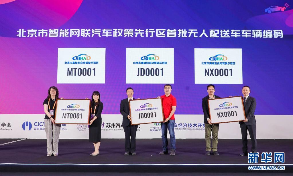 新华社北京5月25日电(郭宇靖、李爱生)25日,在第八届国际智能网联汽车技术年会上,北京市经济和信息化局联合北京经济技术开发区管委会为首批无人配送车企业颁发了无人配送车车辆编码,首次给予无人配送车相应路权。