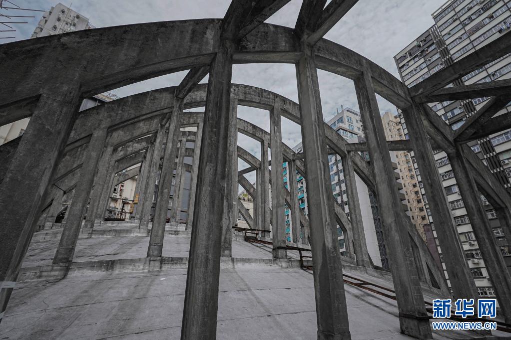 这是4月29日拍摄的香港皇都戏院楼顶上的抛物线型大型飞拱建筑设计。新华社记者 吕小炜 摄